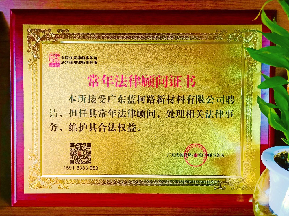 藍(lán)柯路正式常年法律顧問:法制盛邦律師事務(wù)所